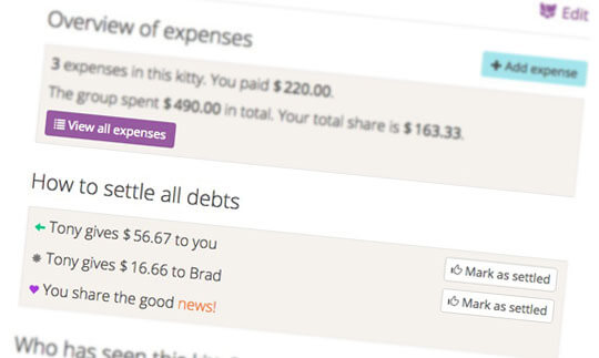 Once he's finished, Paul sends an email with a link to the Kitty. Brad and Tony can enter their expenses.